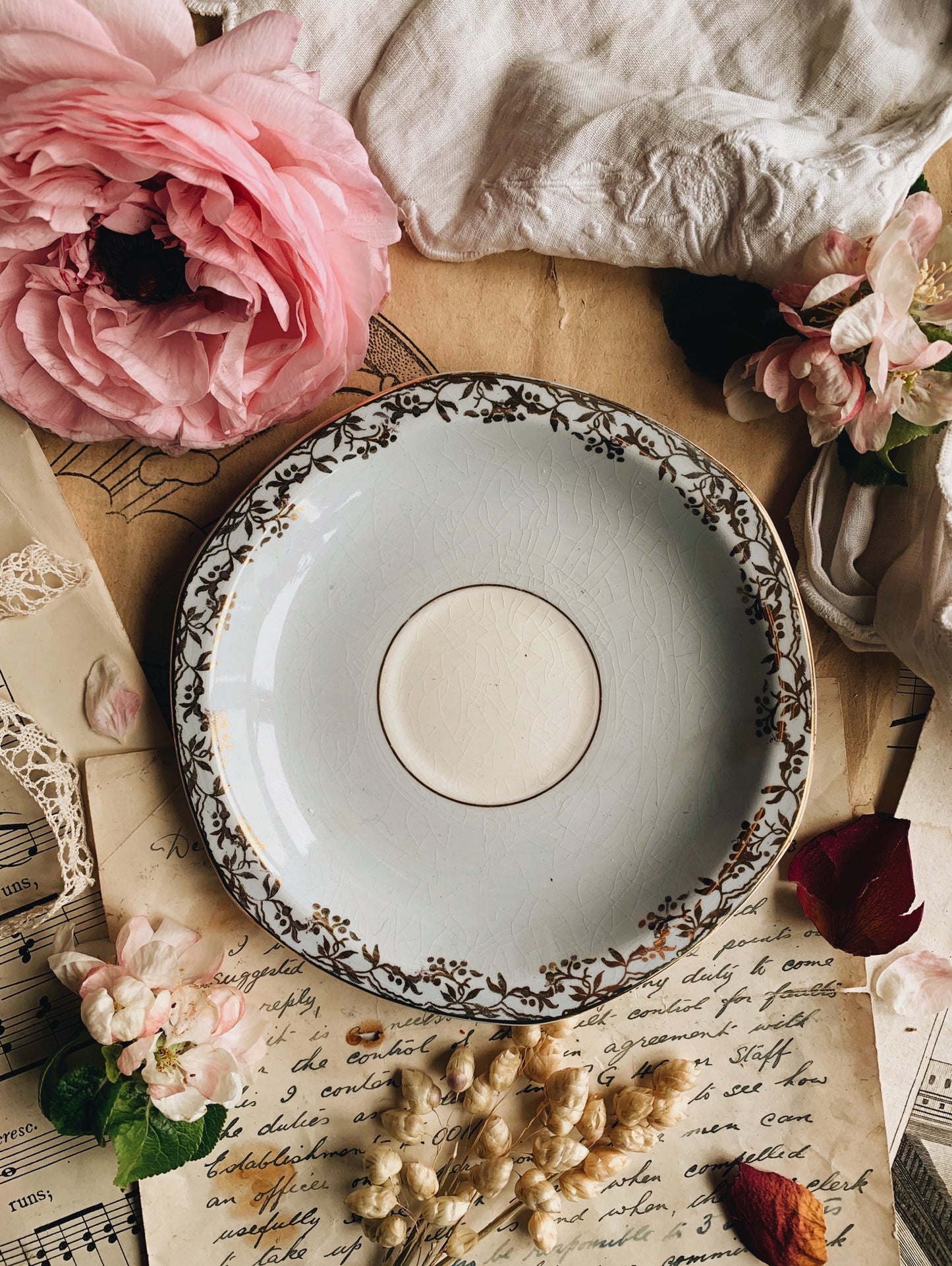 Oh it’s pure joy to source something as beautiful as this. The craftsmanship and intricacy it took to create this masterpieces is sublime! This really is rather special plate and we love the soft blue colour & gilt decoration it’s a classic / timeless aesthetics. Perfect plate for showcasing on a French dresser at home, hanging on a feature wall or to be used sustainably, Enjoy she is a beauty! There are gorgeous sign of crazing and authenticity, it’s a swoon affair.