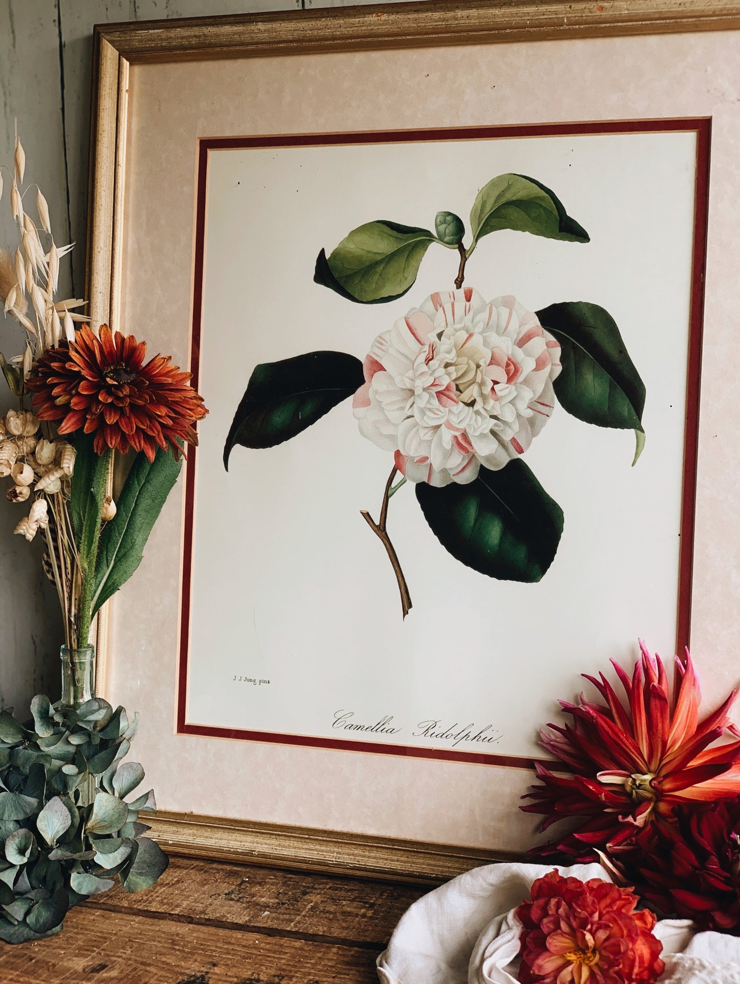 Large Vintage Camellia Print Framed (UK SHIPPING ONLY)