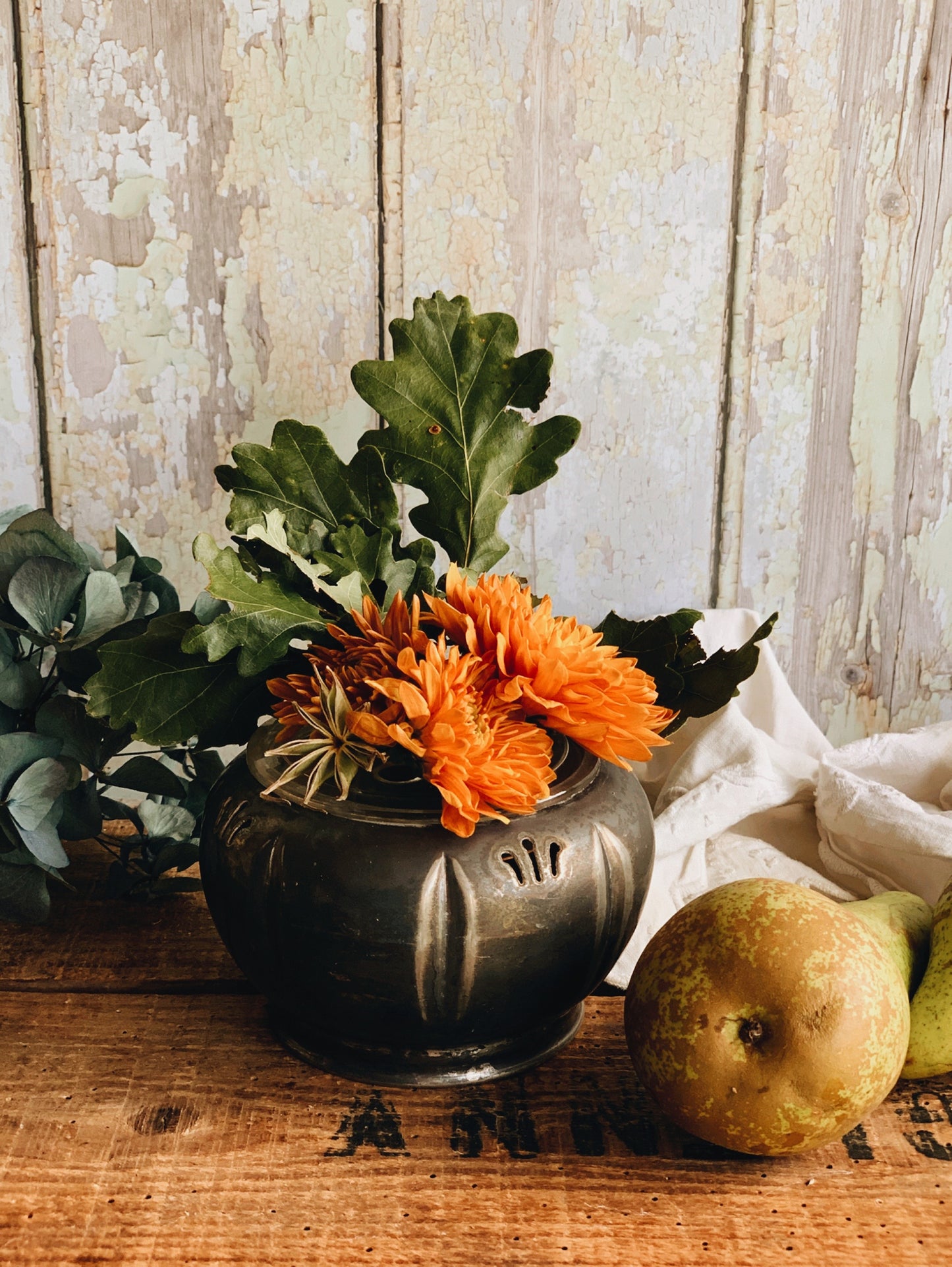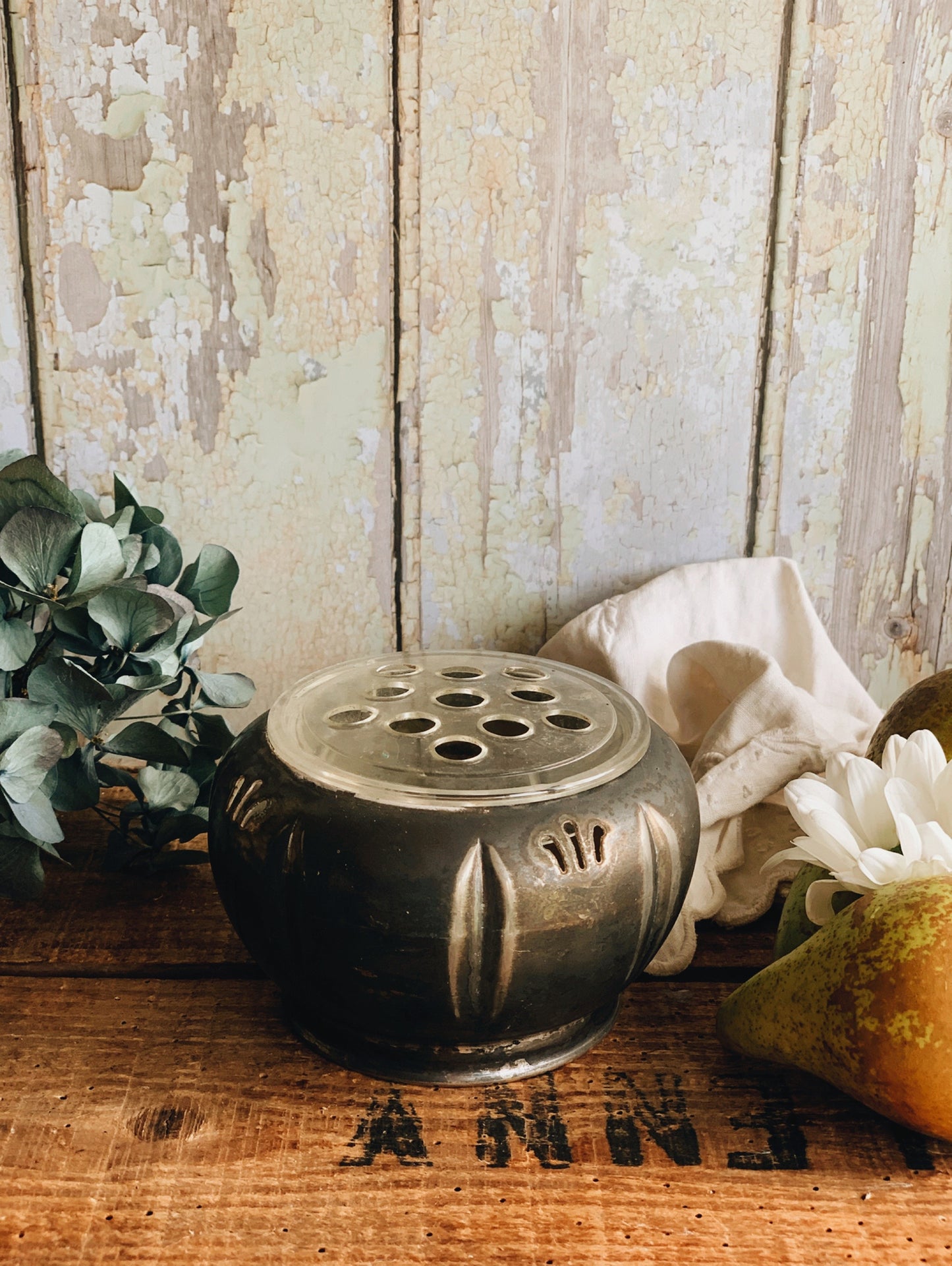 Perfect piece for any keen florist or lover of blooms and is a rustic condition. The top to the Dutch will need fixing to secure the blooms, silicon top (not metal)