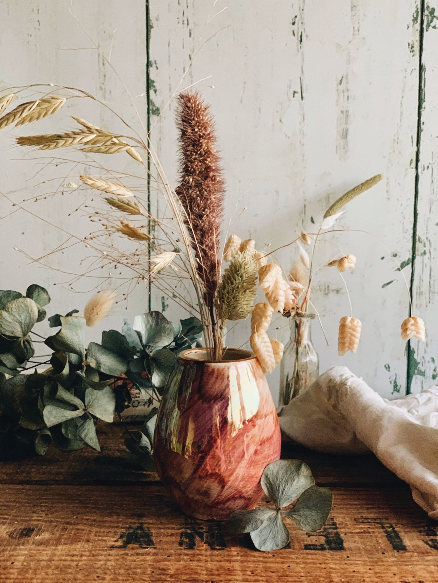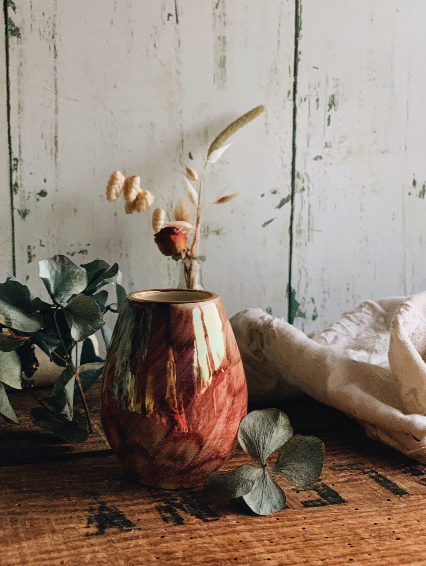 A stunning glazed vase (perfect for posies), we love it’s icon shaping and harmonious hues that run along this gorgeous piece.